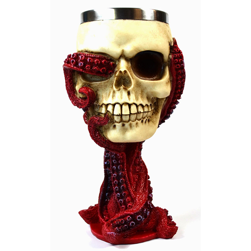 Introducing our unique Skull Chalice with a twist! This eye-catching chalice features intricately designed octopus tentacles that wrap around the skull-shaped chalice. Perfect for adding a touch of intrigue to your home decor or altar, this chalice is both functional and visually captivating. Not dish washer safe and stainless steel cup is not removable.